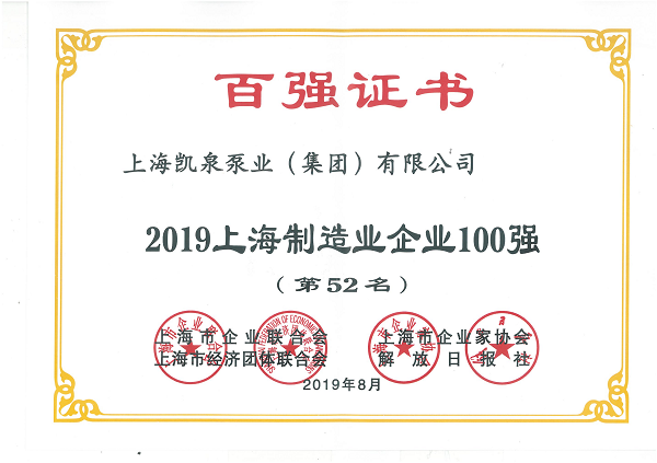 上海凱泉泵業(集團)有限公司作為泵行業中唯一的一家企業躋身于百強之列,名列第八十二強。泵業報國,永續經營是凱泉集團不斷的追求。